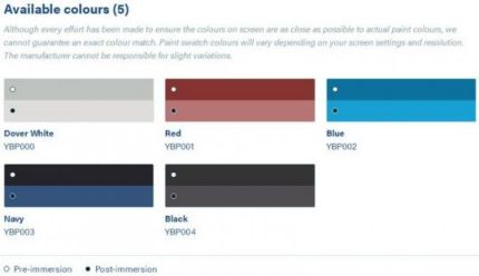Available in Dover White, Blue, Navy Blue, Red and Black